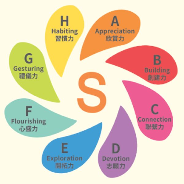 為讓大家容易有系統認識軟實力,我們創立了軟實力藍圖「ABCDEFGH軟商八環」。其意思是軟商(SQ)由軟實力的八方面能力組成,環環緊扣,互相推動,力量循環不息: